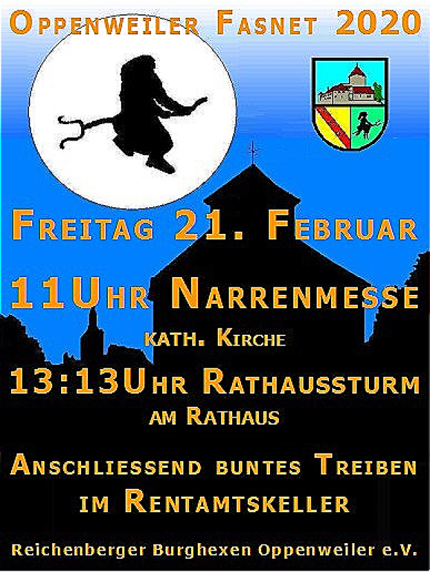Die Reichenberger Burghexen freuen sich euch zur Narrenmesse um 11 Uhr begrüßen zu dürfen.